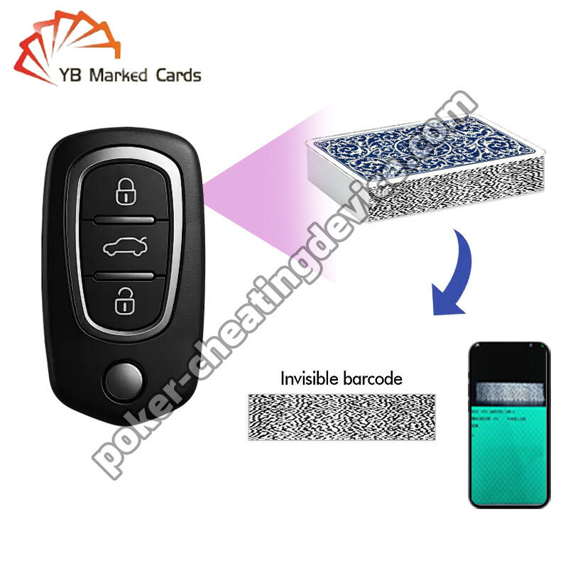 The Car Key Hidden Wireless Spy Camera Scanner is a discreet and advanced tool designed to help you stay ahead in the game. When poker analyzers can't be placed on the table, this clever device offers a perfect solution. It effectively scans barcode-marked cards from 25-40 cm, sending the data to your poker analyzer for analysis, and delivering results directly to you through a discreet earpiece.